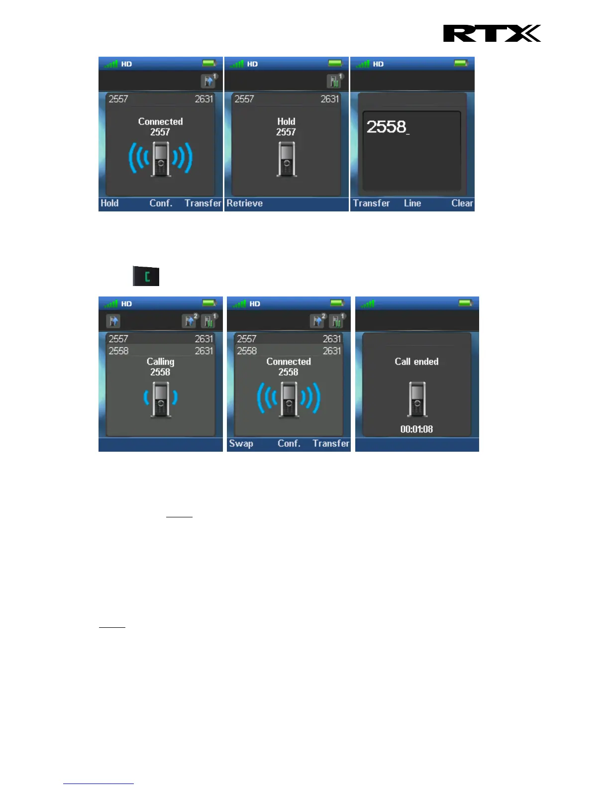5. As the third party answers the call the handset user initiating the transfer will show a