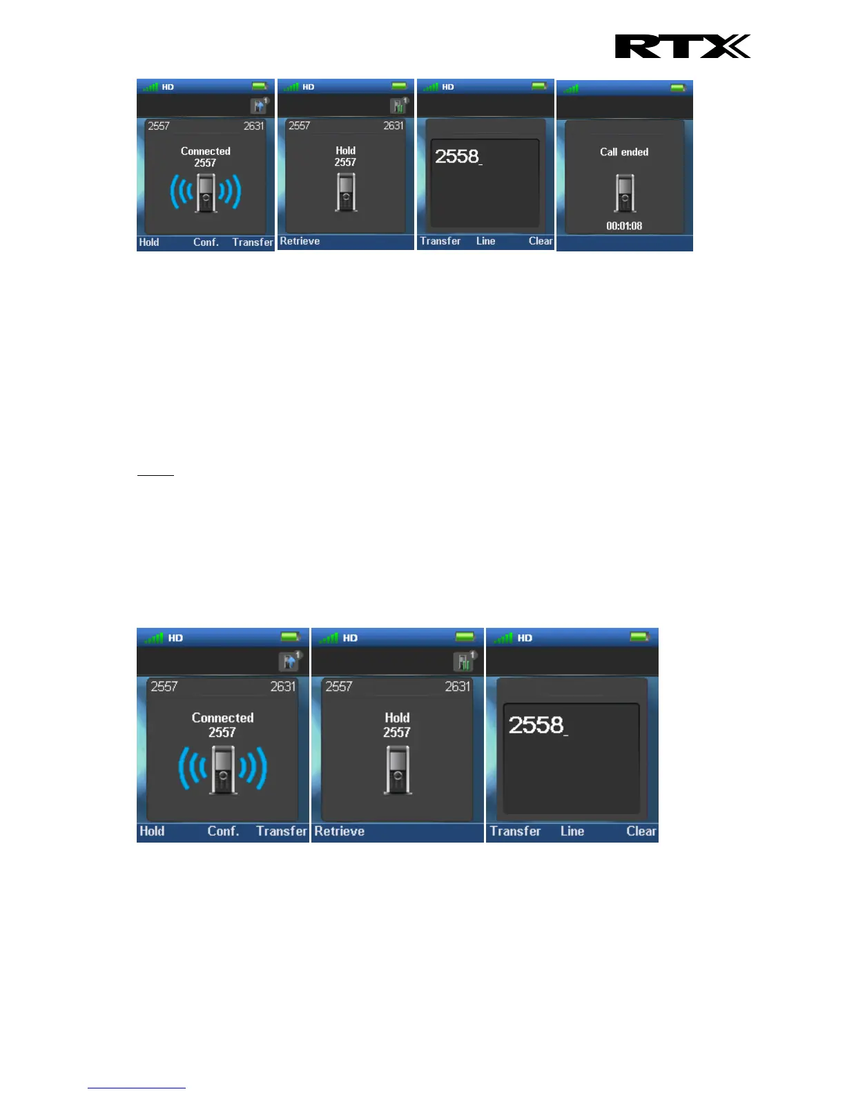 4. A ring back tone is now heard in the handset as the second party is alerting.
