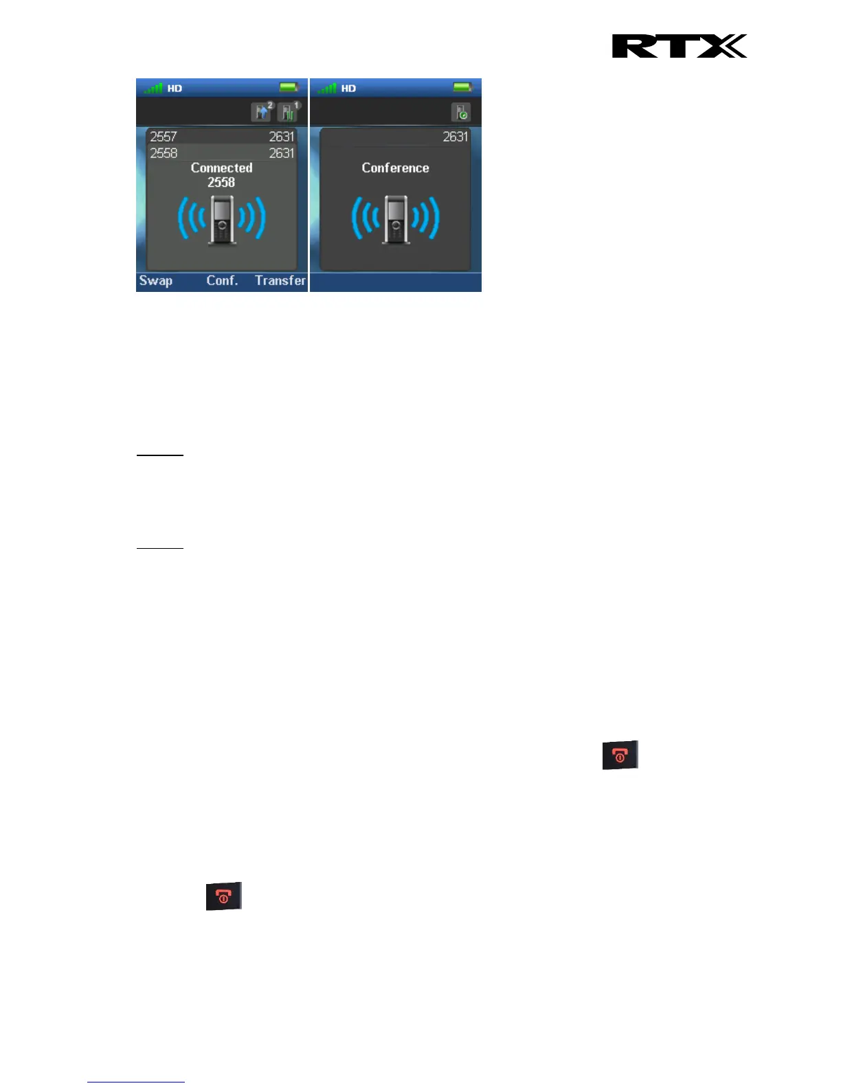 1. The user who has started the conference presses the red “On-hook” key to terminate