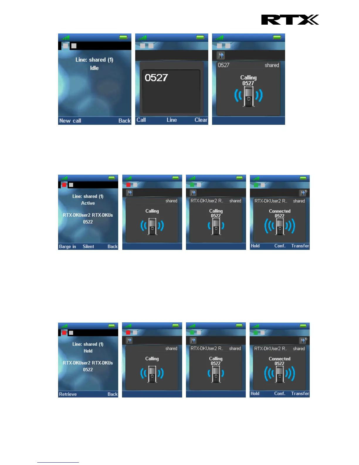 Retrieve is available for SCAs in the held state. Pressing the left soft key initiates an outgoing call to the