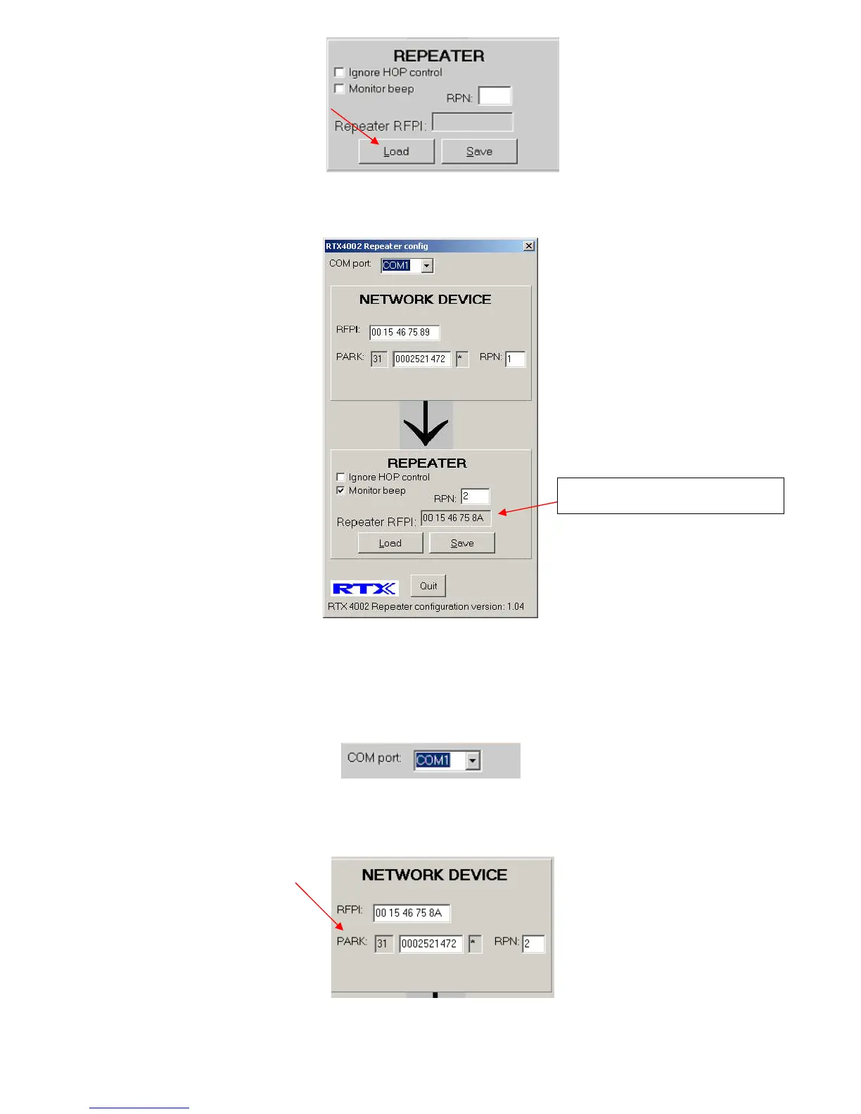 8. The Base station RFPI and the repeater RFPI is shown in the RTX4002 repeater config program. Remember the