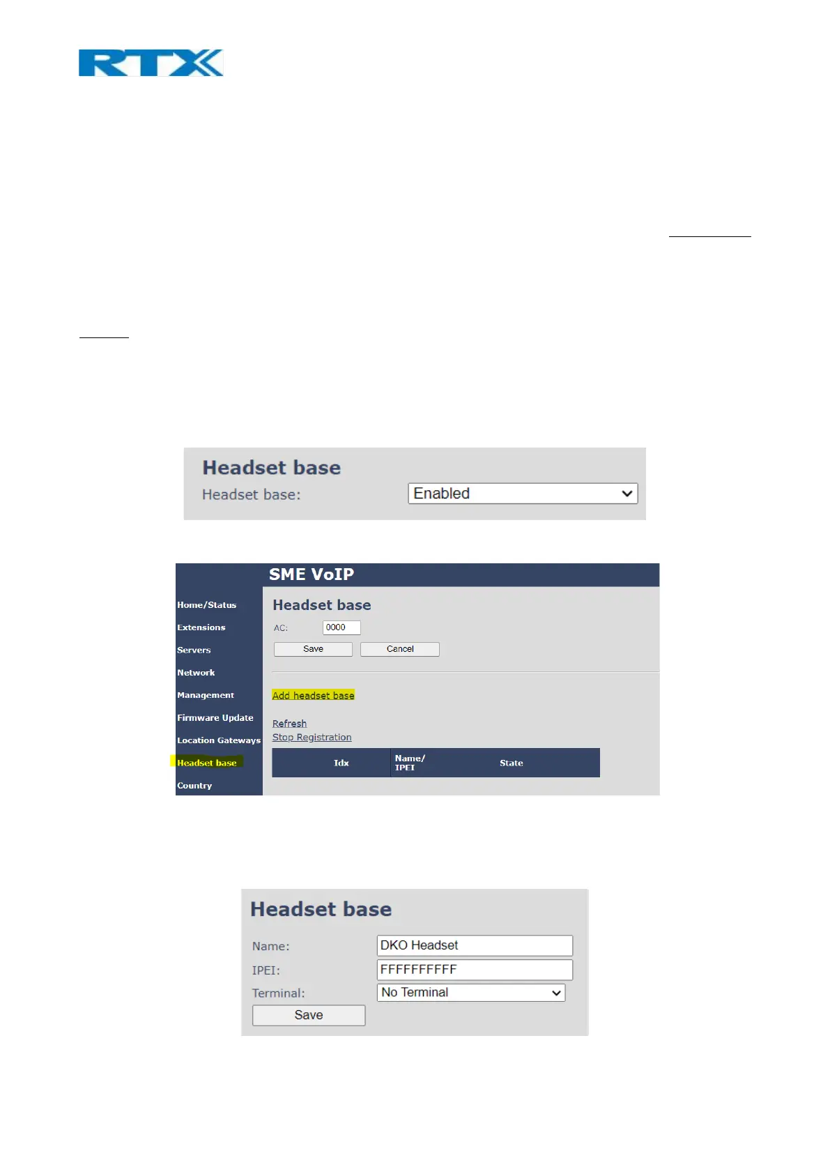 IMPORTANT: Both the RTX745x base and the RTX725x headsets can be SIP registered to the VoIP System.