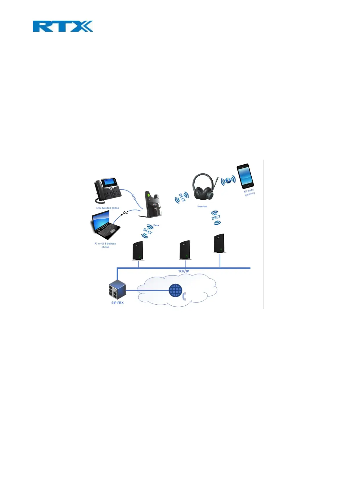 The Wireless headset system consists of three main products. RTX745x DECT Base Station, RTX725x DECT