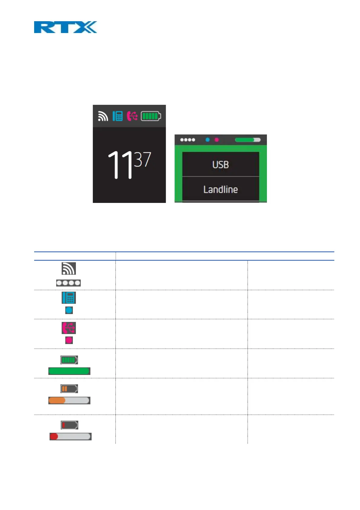 The following table aims to introduce you to the available icons on the UI of the device.