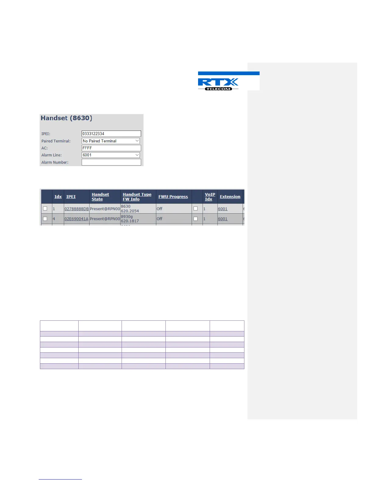 On the handset page, choose “Paired Terminal” and select the Idx. number of the headset that you want to