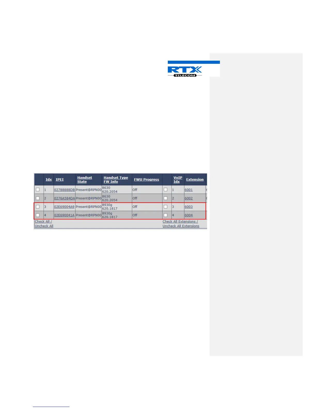 The RTX8930 headset is registered on the phone system, in the same way as a normal DECT phone.