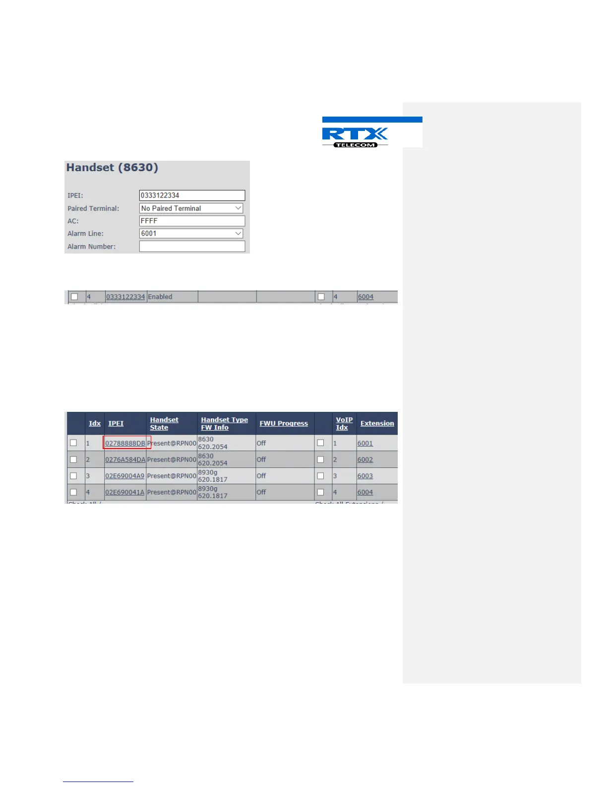 To pair headset and handset, press the IPEI link of the handset that you want paired with a headset.