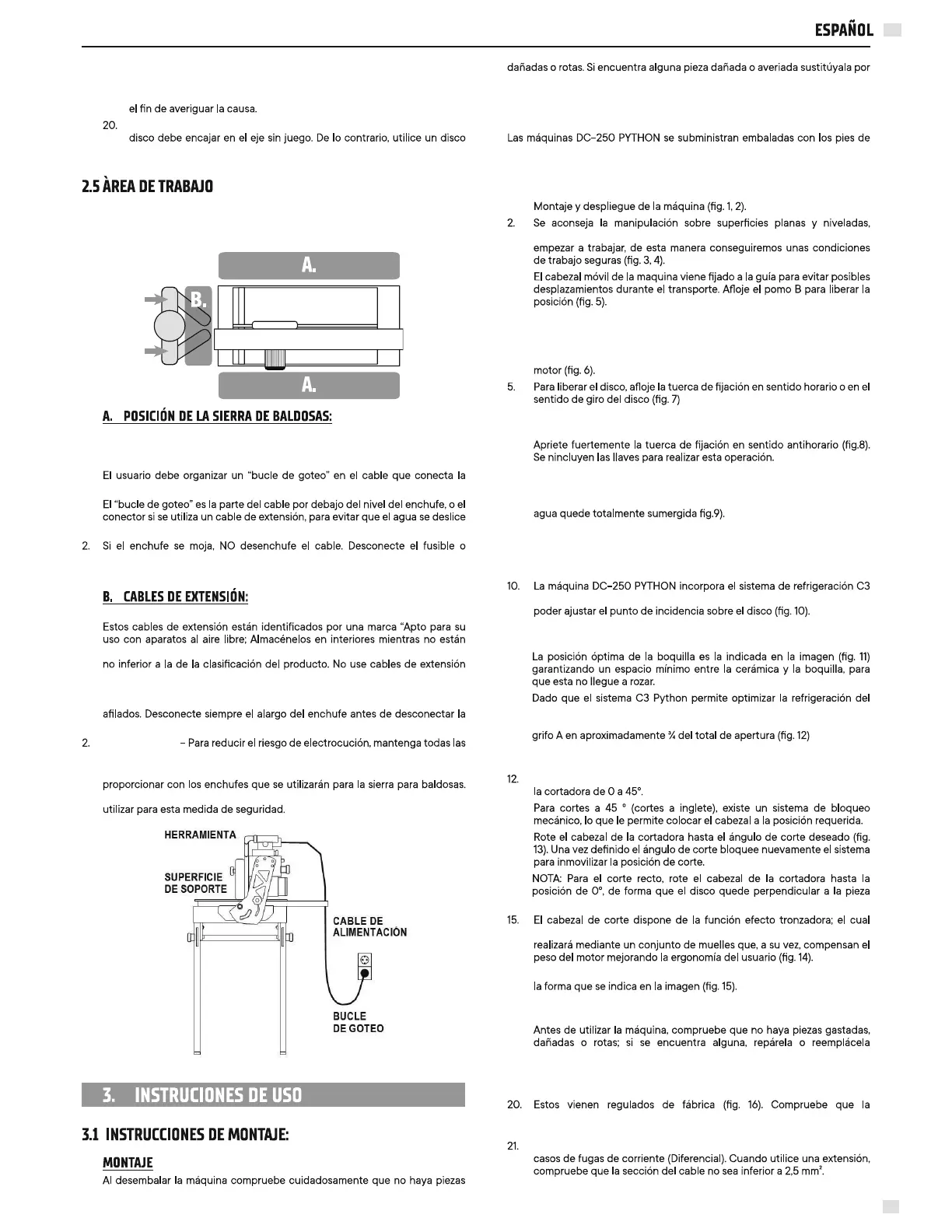 1. Para evitar la posibilidad de que el enchufe o la clavija de la sierra se mojen,