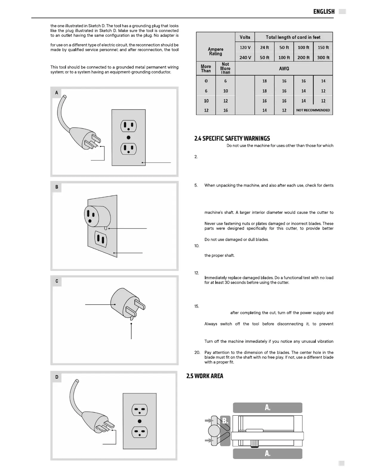 TABLE A / MINIMUM GAUGE FOR CORDS: