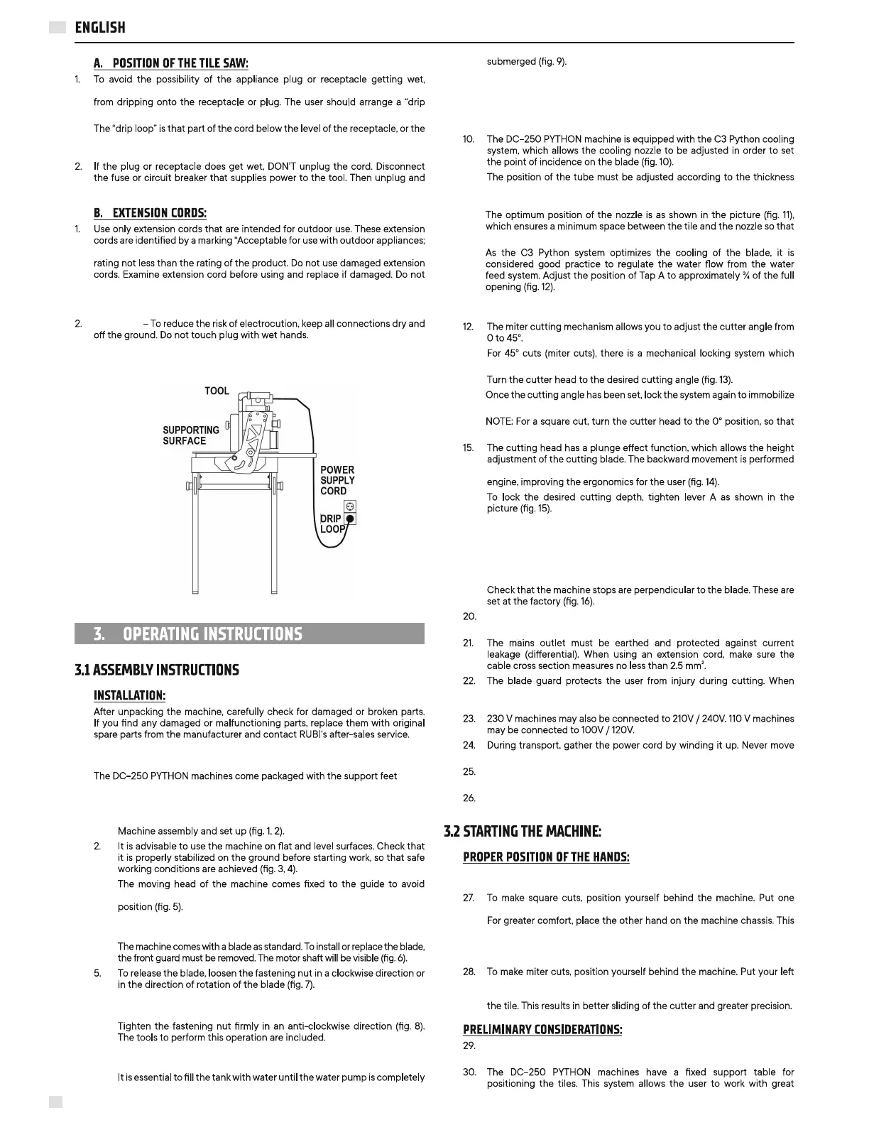 circuit(s) or outlet (s) to be used for the tile saw. Receptacles are available