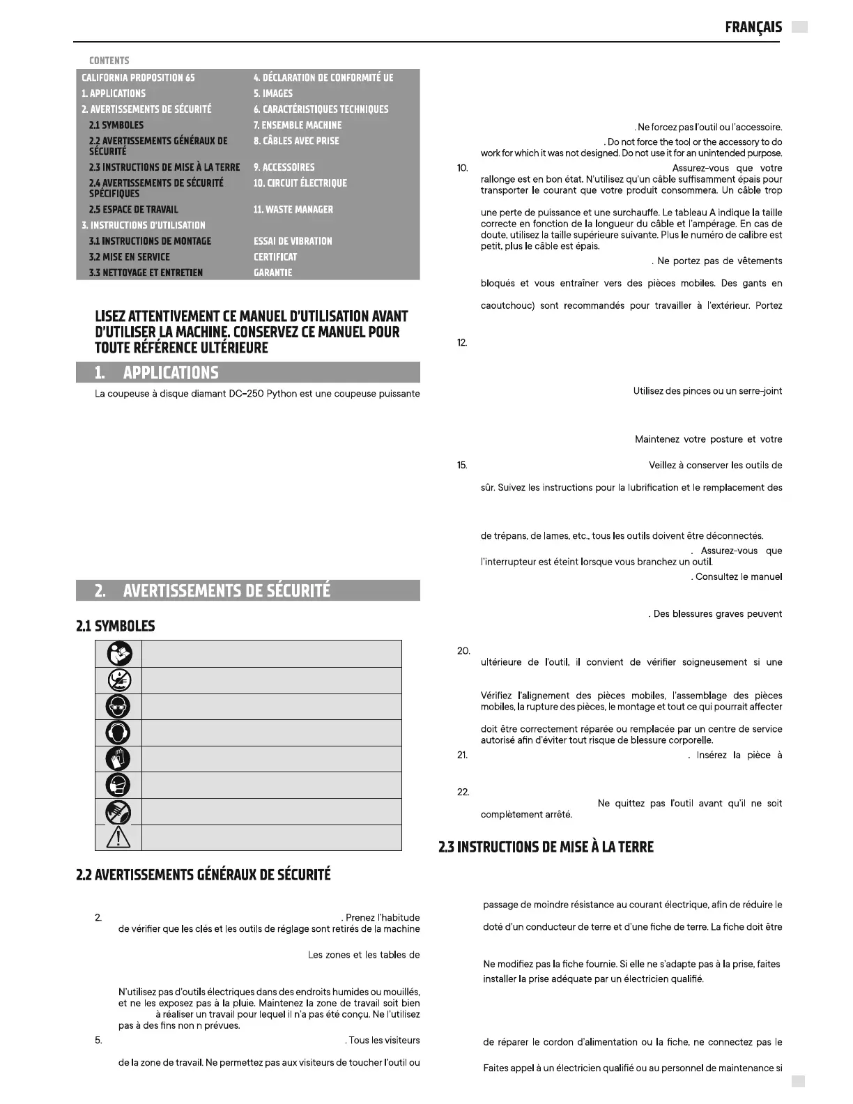 ATTENTION ! lisez tous les avertissements de sécurité et toutes les