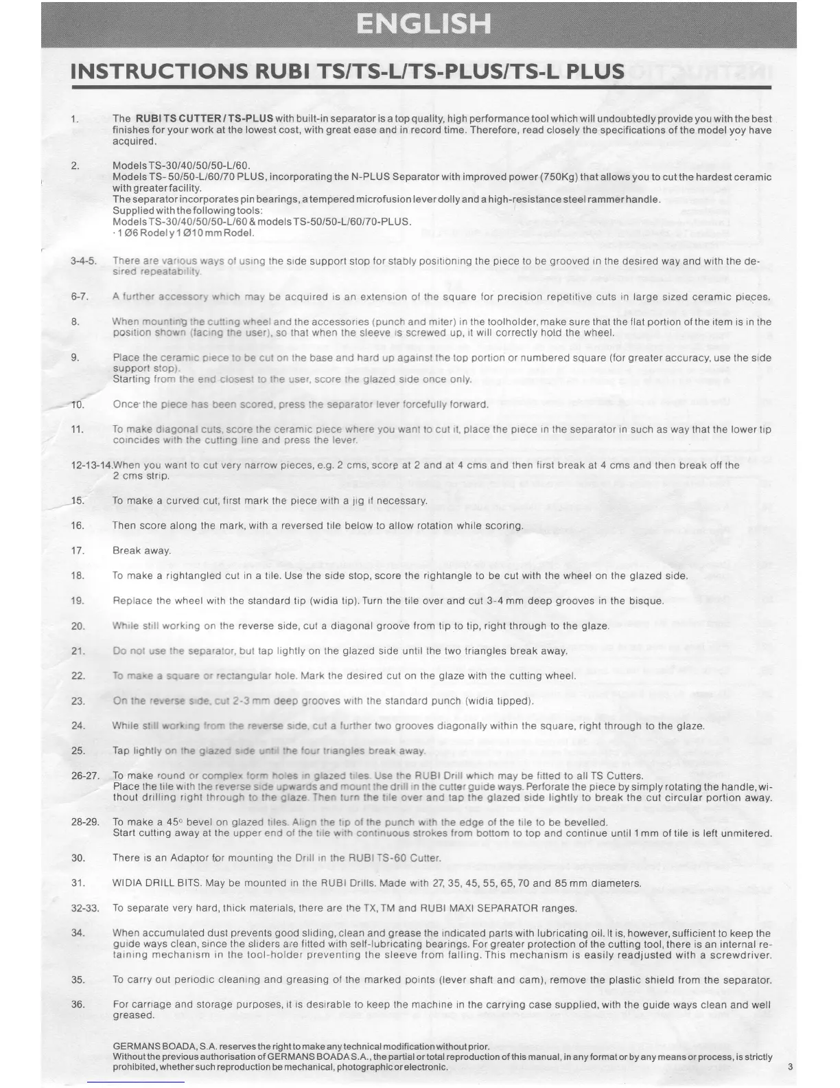GERMANS BOADA, S.A. reservesthe rightto make