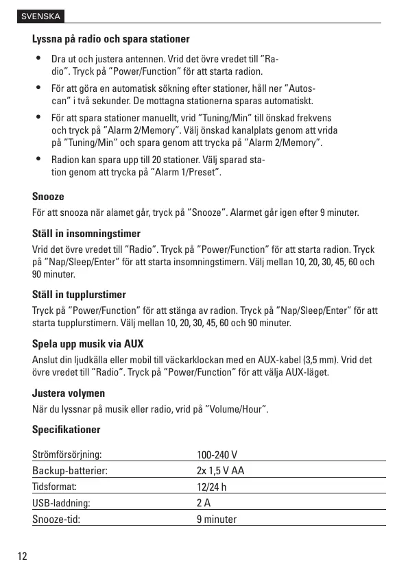 Tryck på ”Power/Function” för att stänga av radion. Tryck på ”Nap/Sleep/Enter” för att