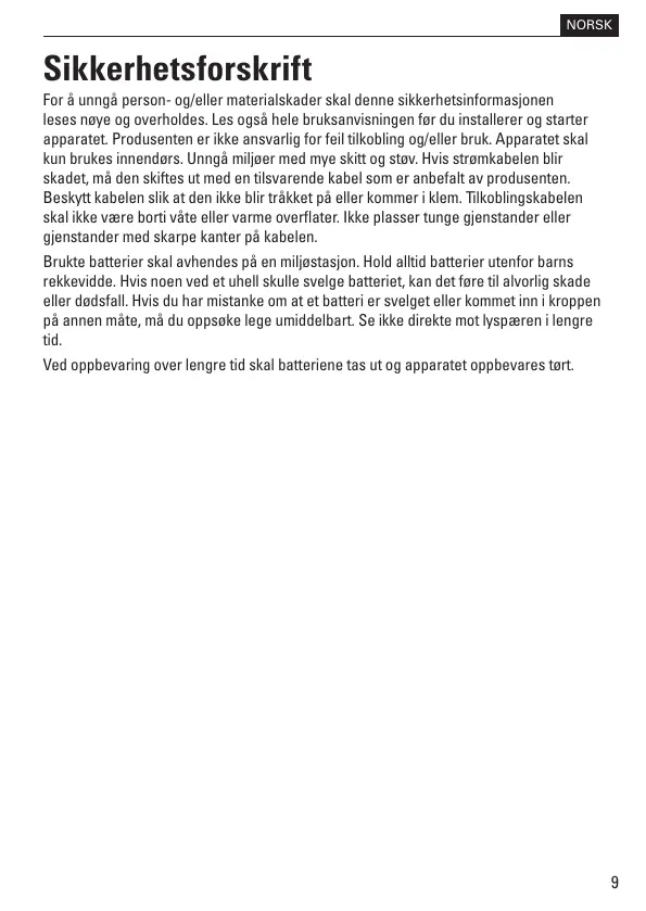 Ved oppbevaring over lengre tid skal batteriene tas ut og apparatet oppbevares tørt.