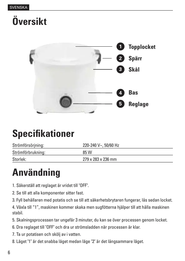 3. Fyll behållaren med potatis och se till att säkerhetsbrytaren fungerar, lås sedan locket.