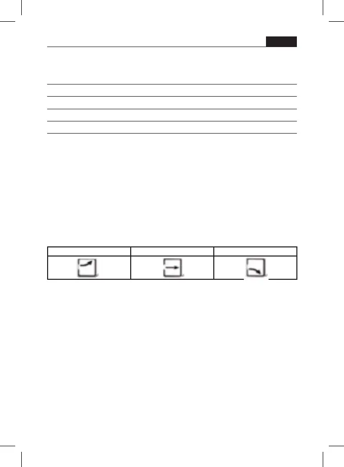 Når temperaturen reduseres med 1°C, vil pilen som vender nedover komme frem.