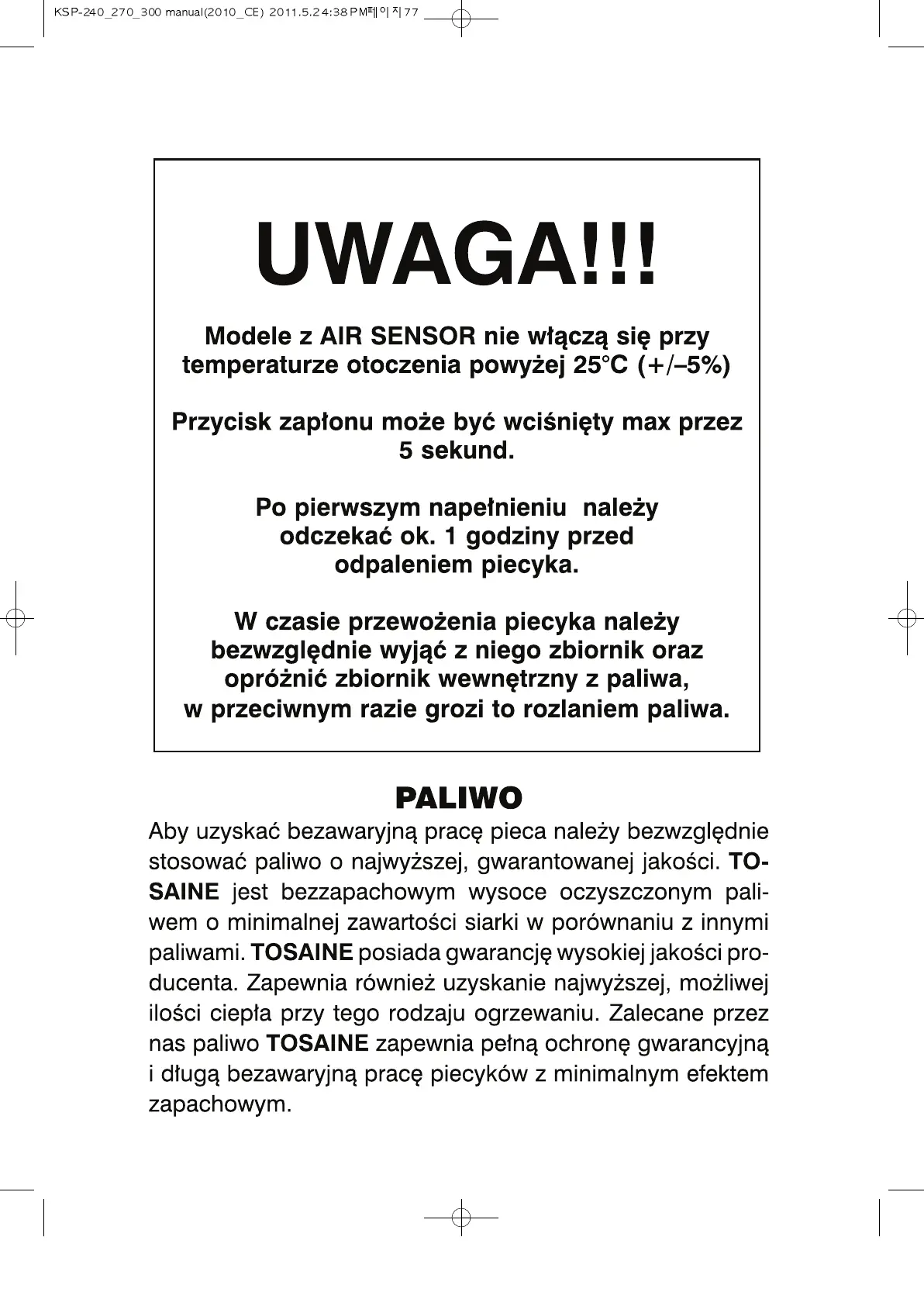 Ruby Kero KSP-240A - Fuel Guidelines (Polish)