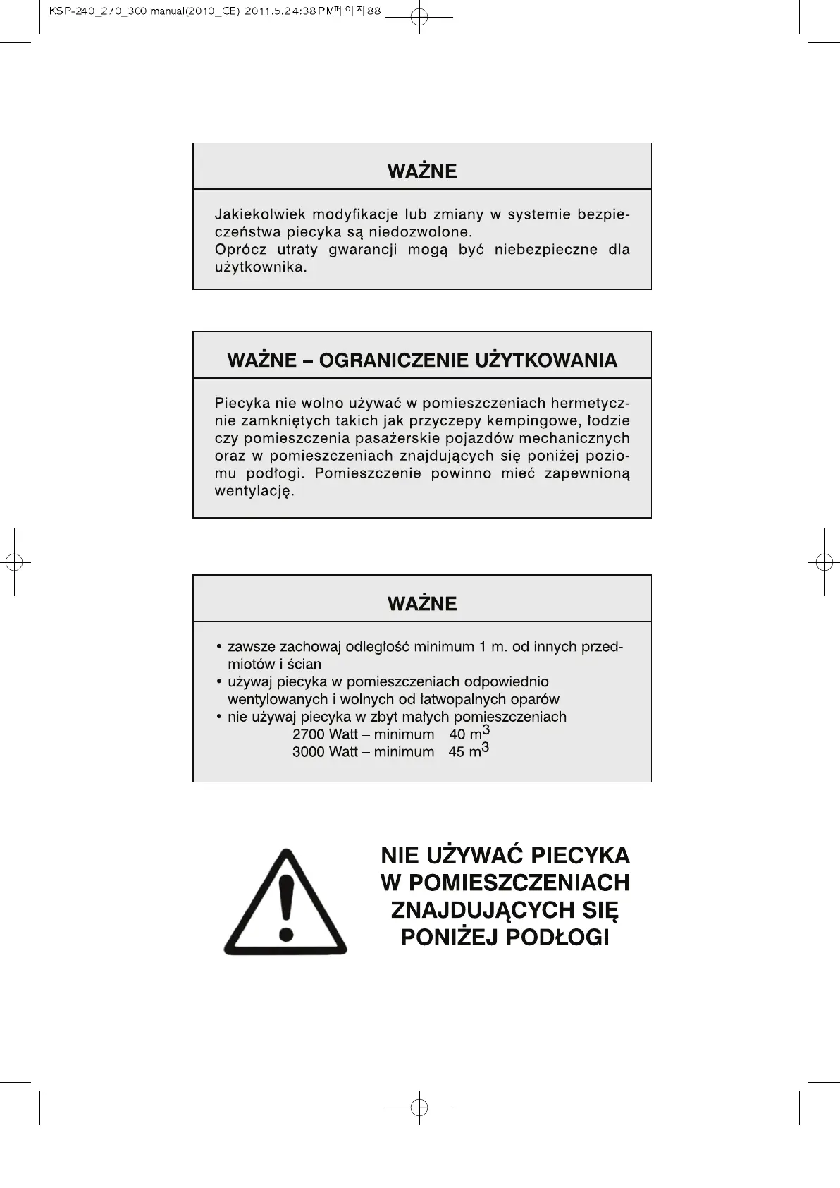 Ruby Kero KSP-240A - Usage Limitations (Polish)
