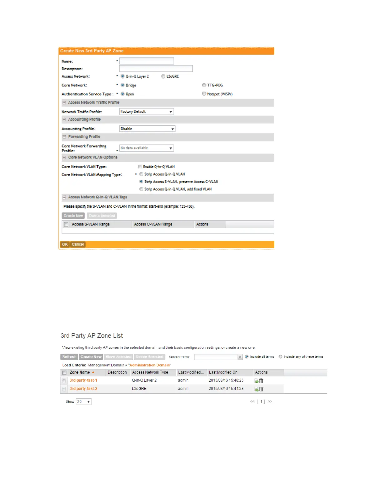 To view a list of 3rd party AP zones that have been created, go to Configuration > 3rd Party