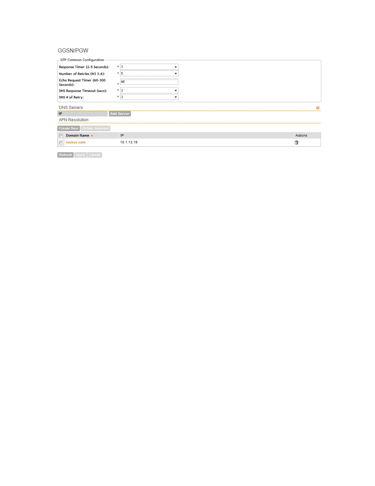 5. In the APN Resolution section, click Create New to define the IP address of the GGSN that
