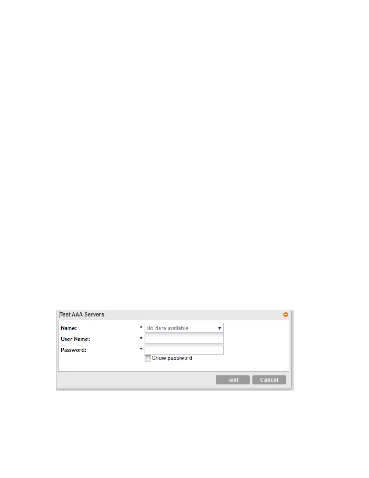 NOTE: Before you can test the AAA server configuration, you must have created an AAA server.