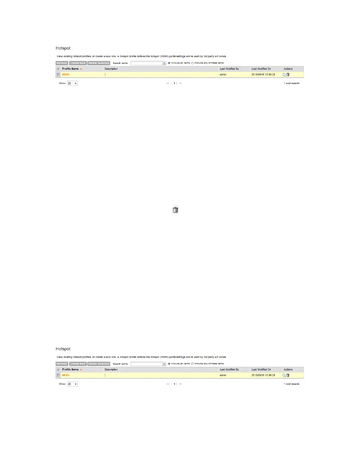 Figure 82: The Hotspot Profiles page lists the profiles that have been created on the