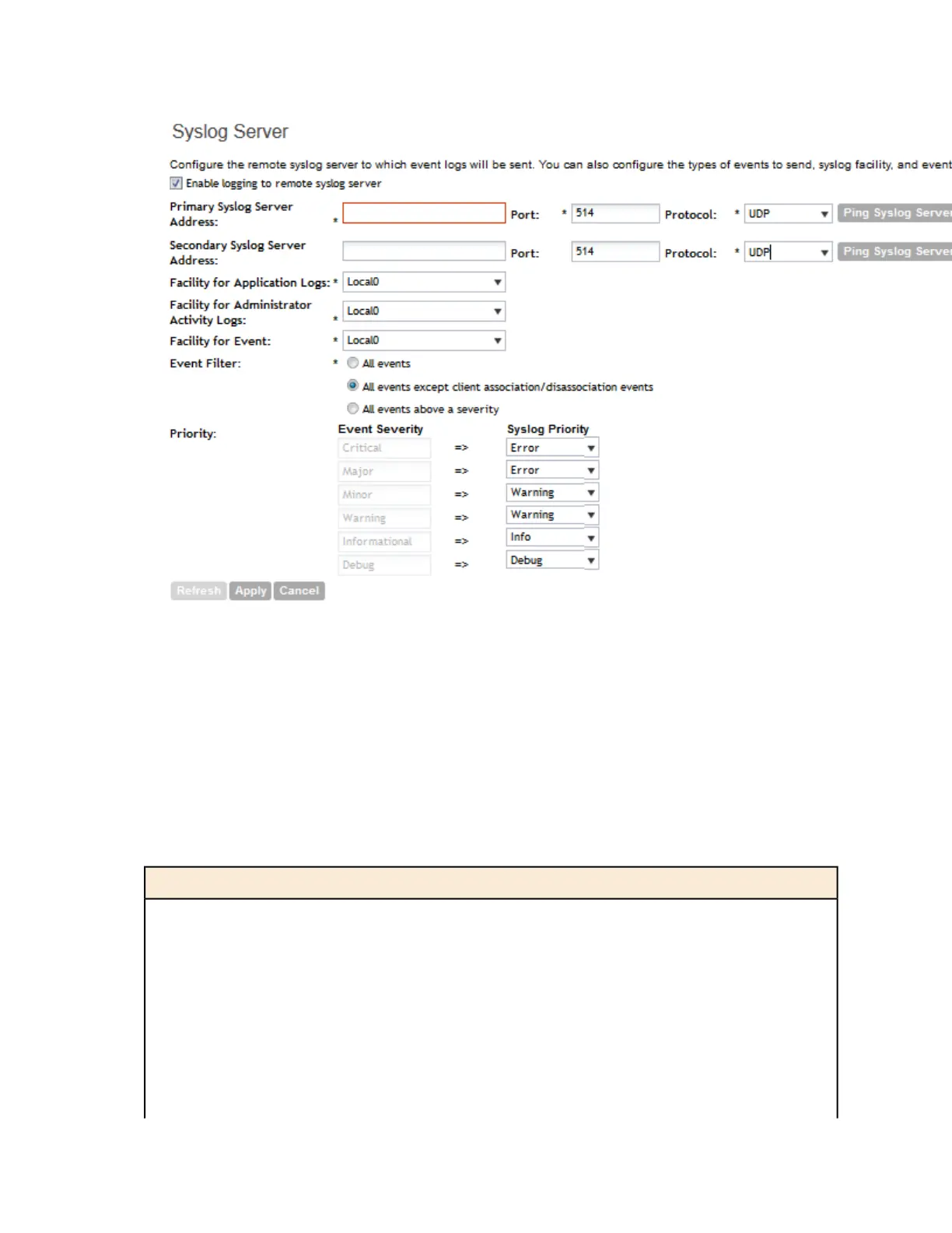 Figure 98: Syslog server settings