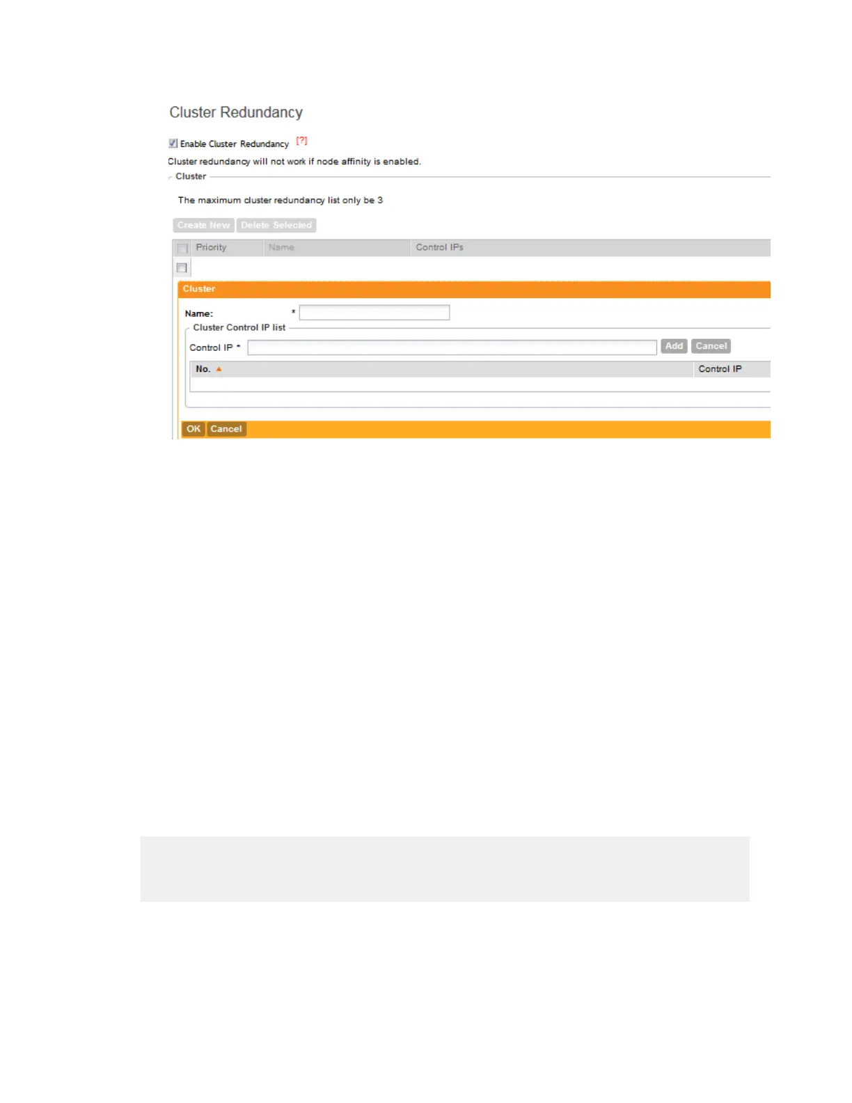 Figure 119: Use the Cluster form to set the cluster control IP addresses