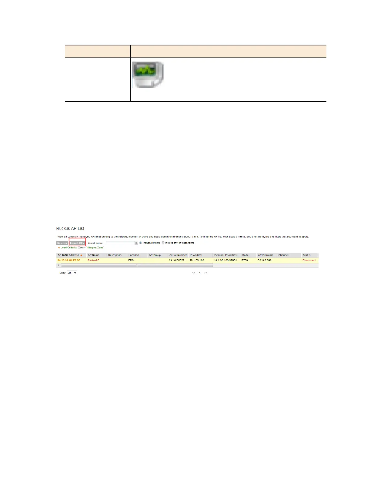 Figure 157: Click Export CSV to download the AP list