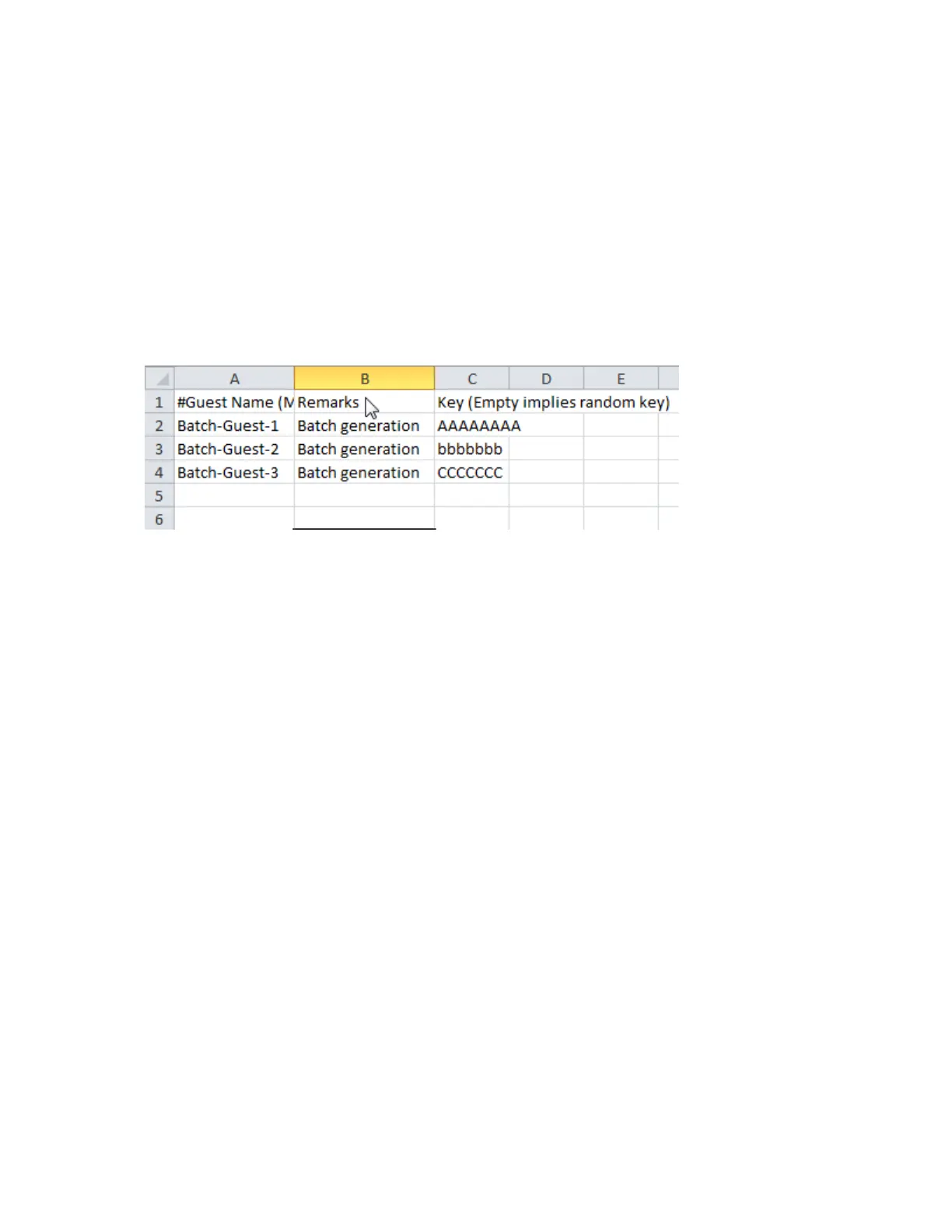 Figure 184: A sample CSV of generated guest passes when opened in Excel