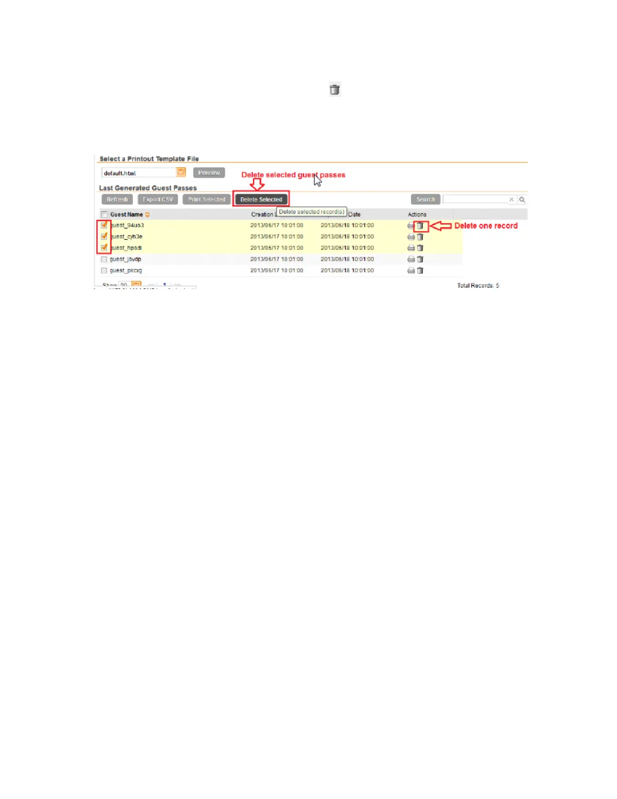 NOTE: To delete a single guest pass, click the (delete) icon that is in the same row as the