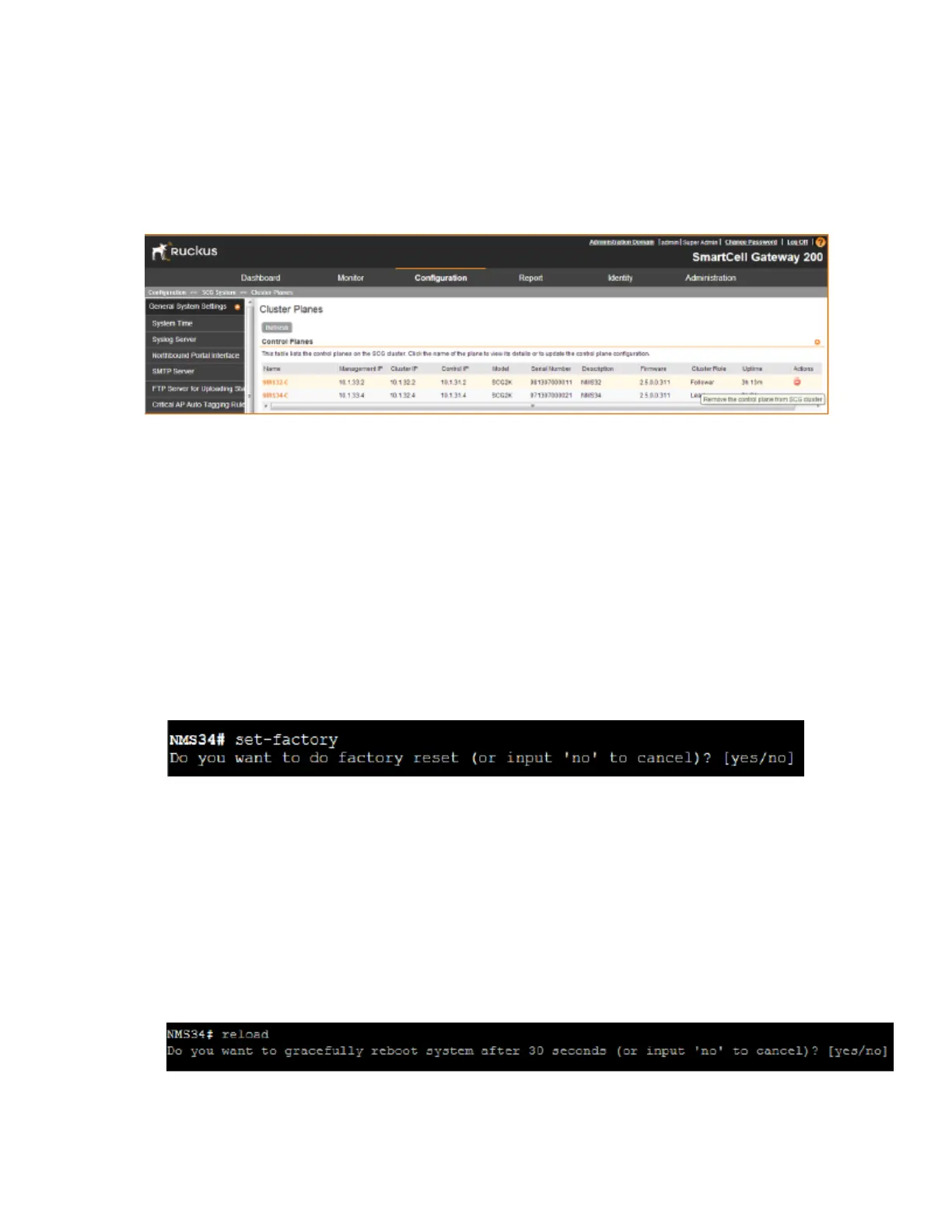 Figure 221: Enter reload to trigger the factory reset process