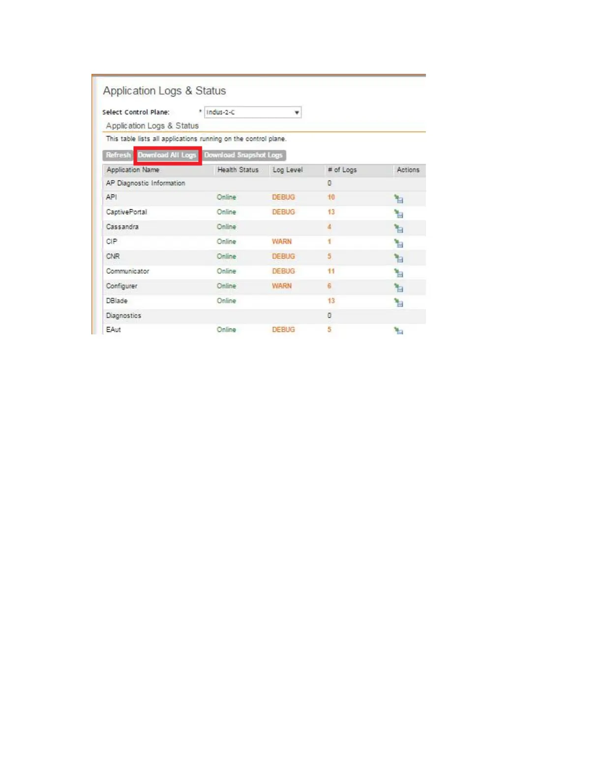 Figure 229: Click the Download All Logs button