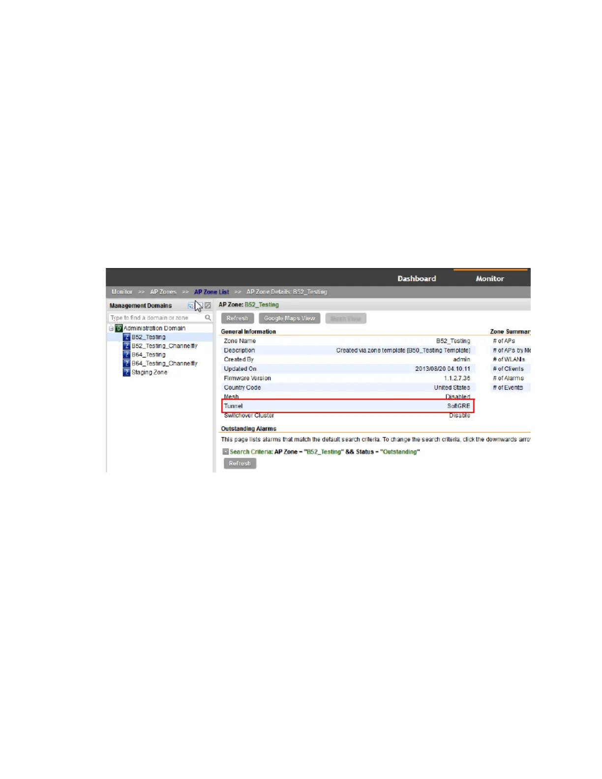 Figure 258: Check the value for "Tunnel" to verify that a zone is using SoftGRE tunneling