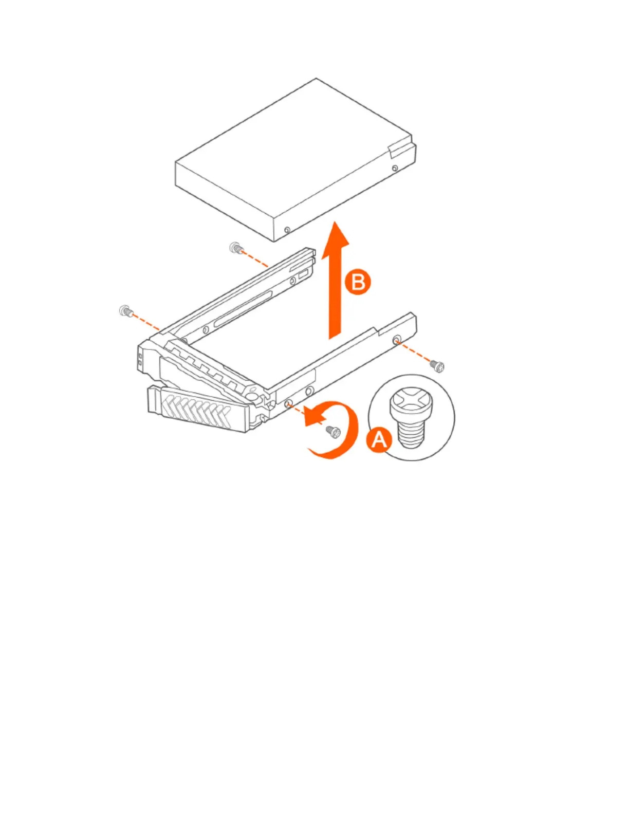 3. Install the new drive in the drive carrier (see A in Figure 263: Installing the hard drive on page