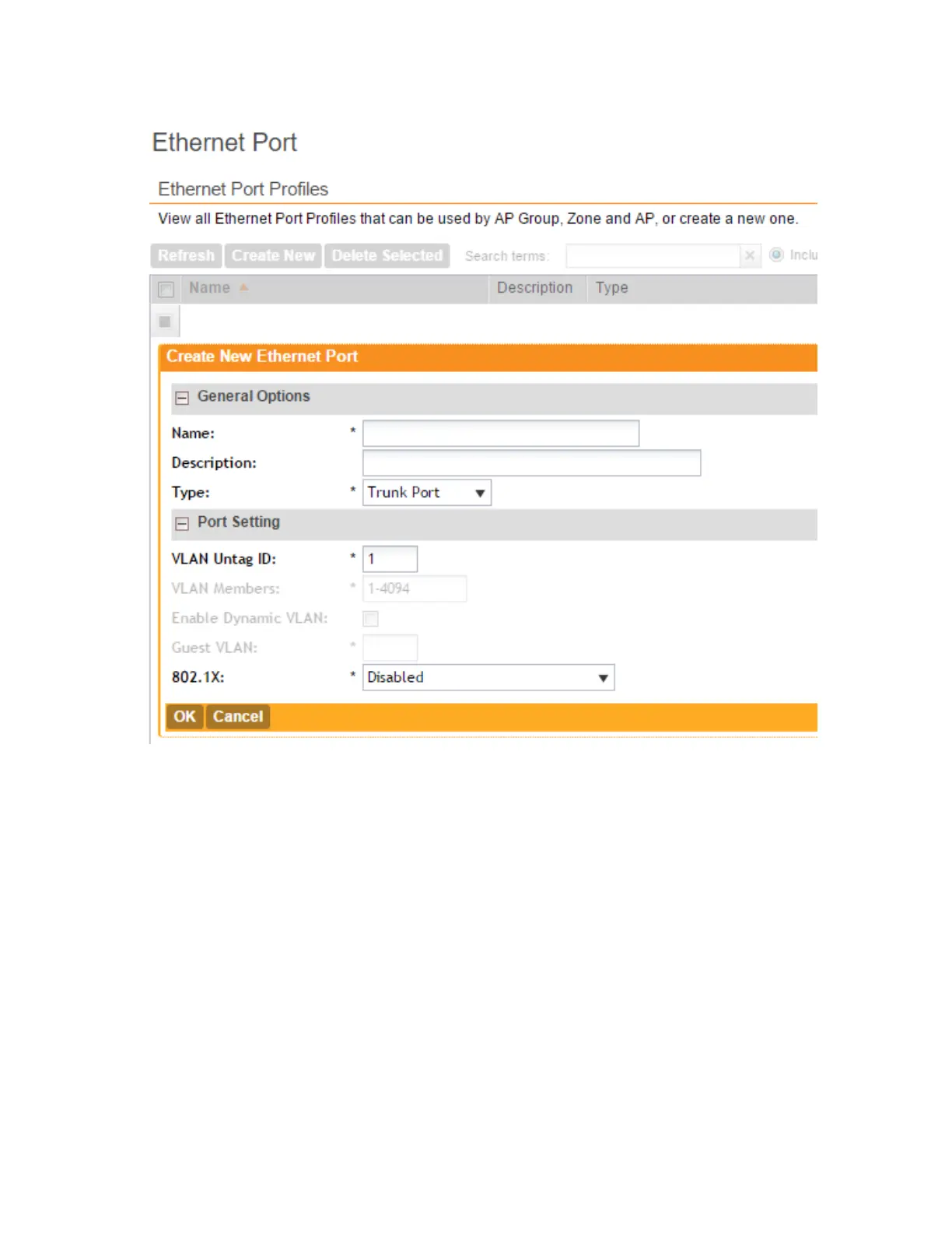 • At least one trunk port must be enabled on the AP for the Ethernet port profile to work.