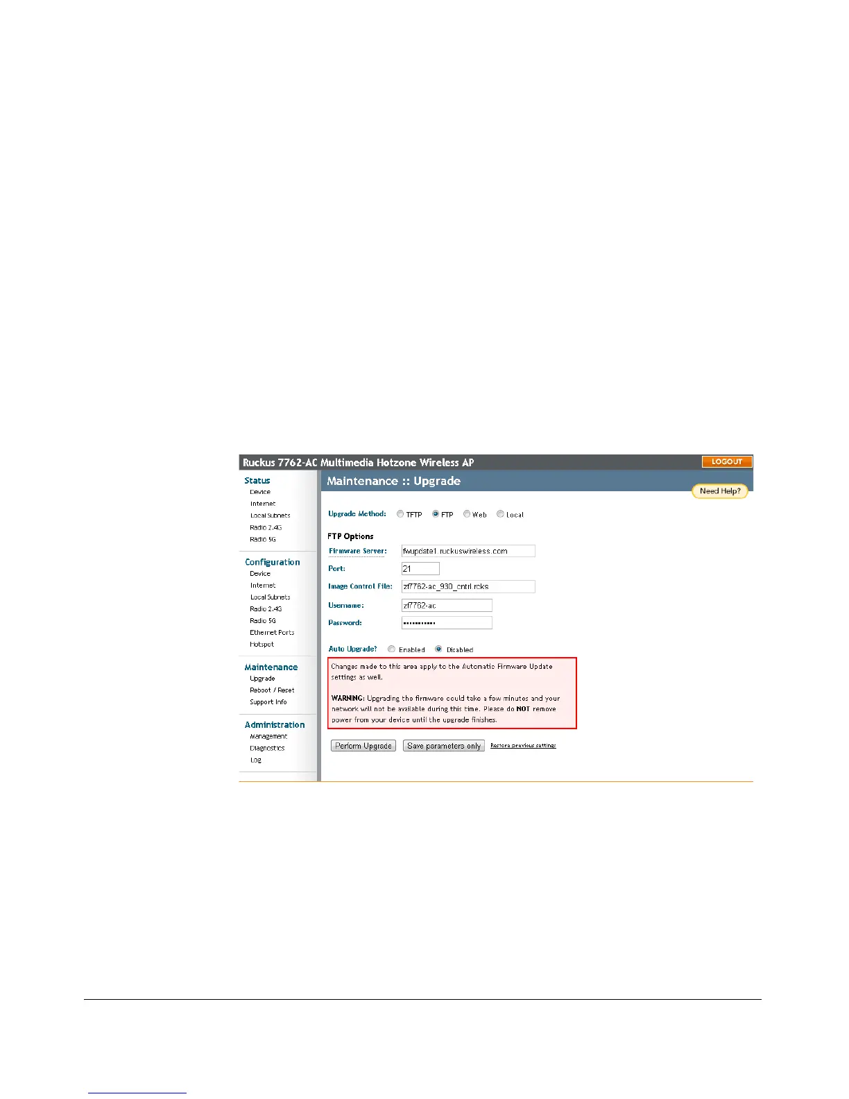 Figure 46. The Maintenance > Upgrade page
