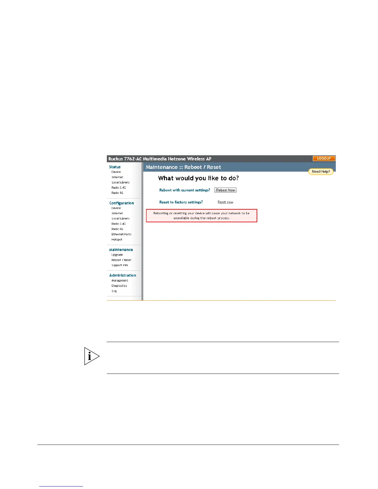 Figure 47. The Maintenance > Reboot/Reset page