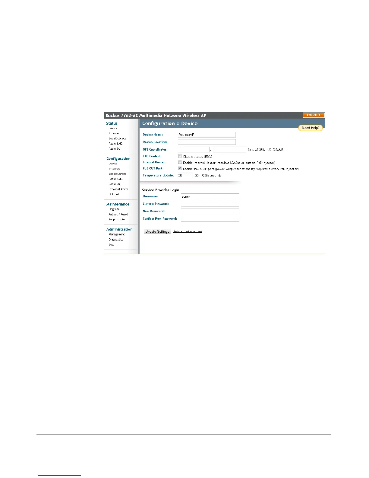 provider login settings. (Temperature update is only available on certain ZoneFlex