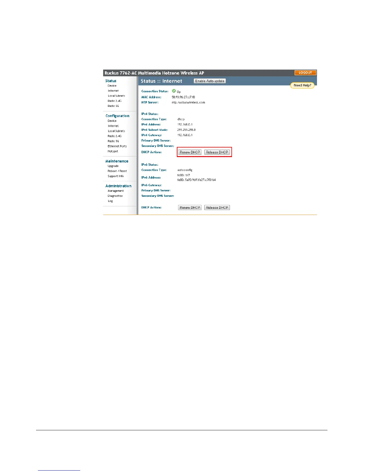 • Click Renew DHCP to request a new IP address lease from the DHCP server.