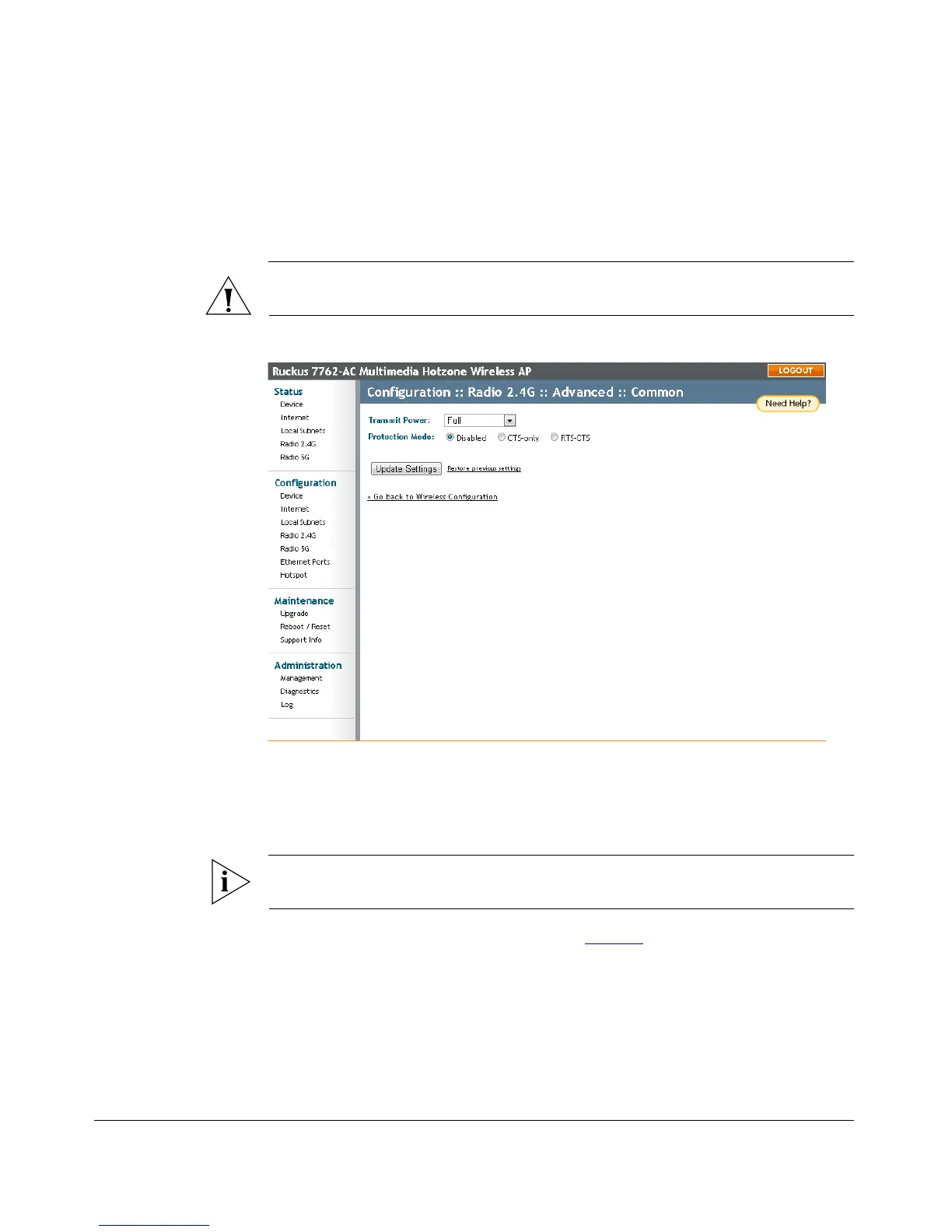 NOTE: If you are using a dual band ZoneFlex AP, go to Configuration > Radio 2.4G