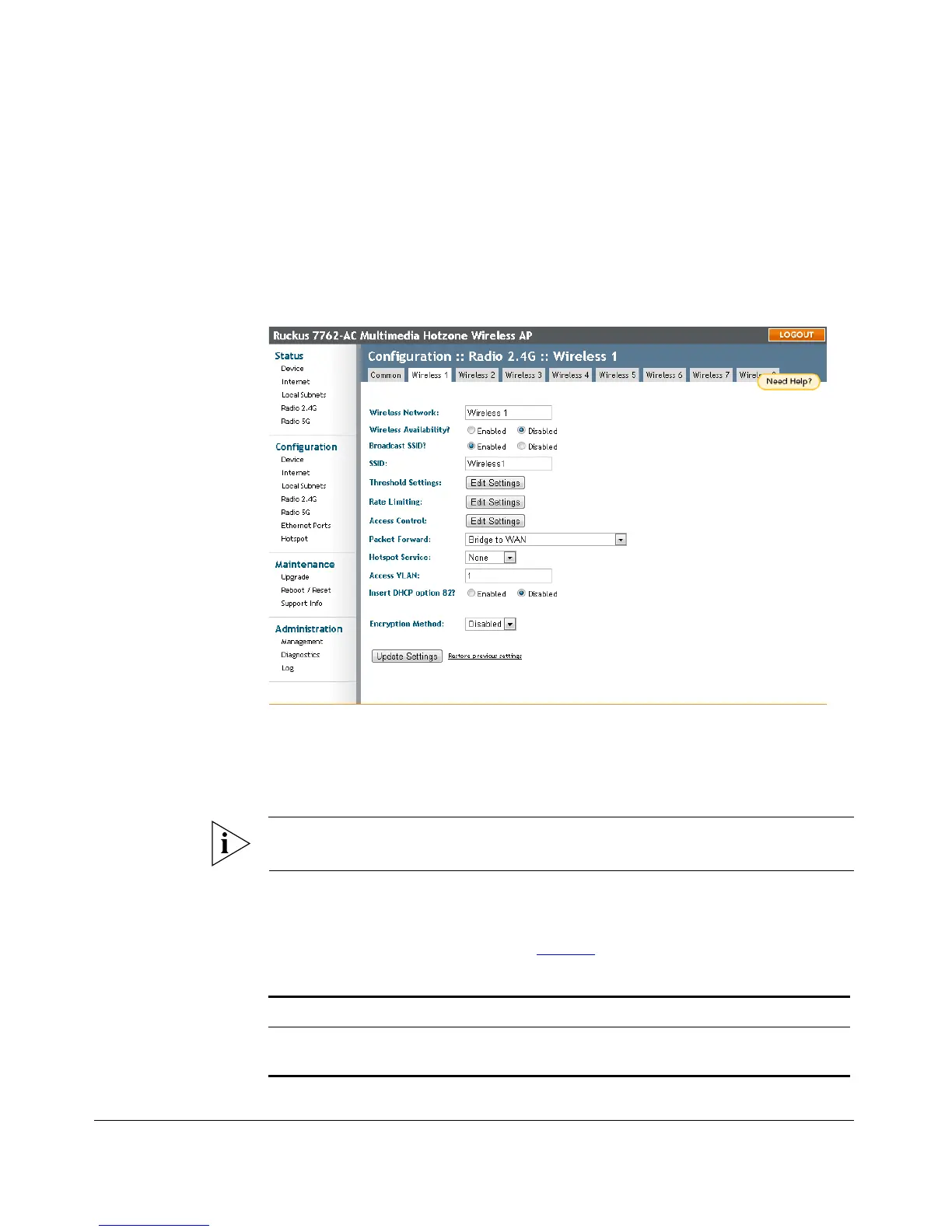 NOTE: If you are using a dual band ZoneFlex AP, go to Configuration > Radio 2.4G
