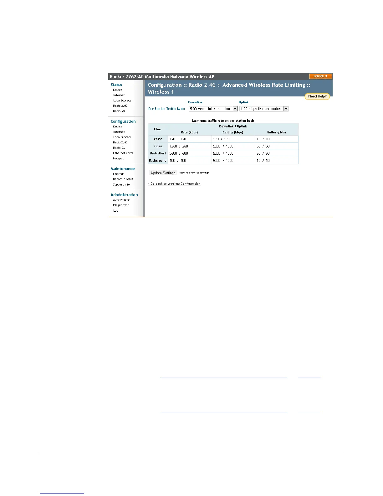Figure 30. Limit per station traffic rates on a specific WLAN