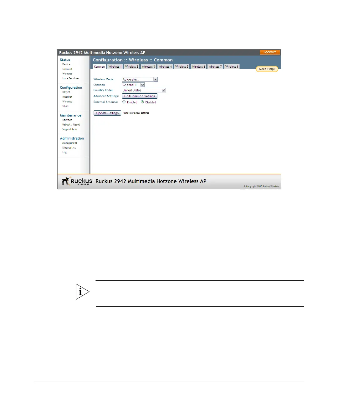 Figure 14. The Configuration > Wireless > Common tab