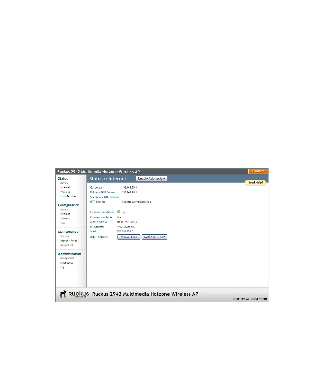 • To force the DHCP server to assign a new IP address to this AP, click Renew