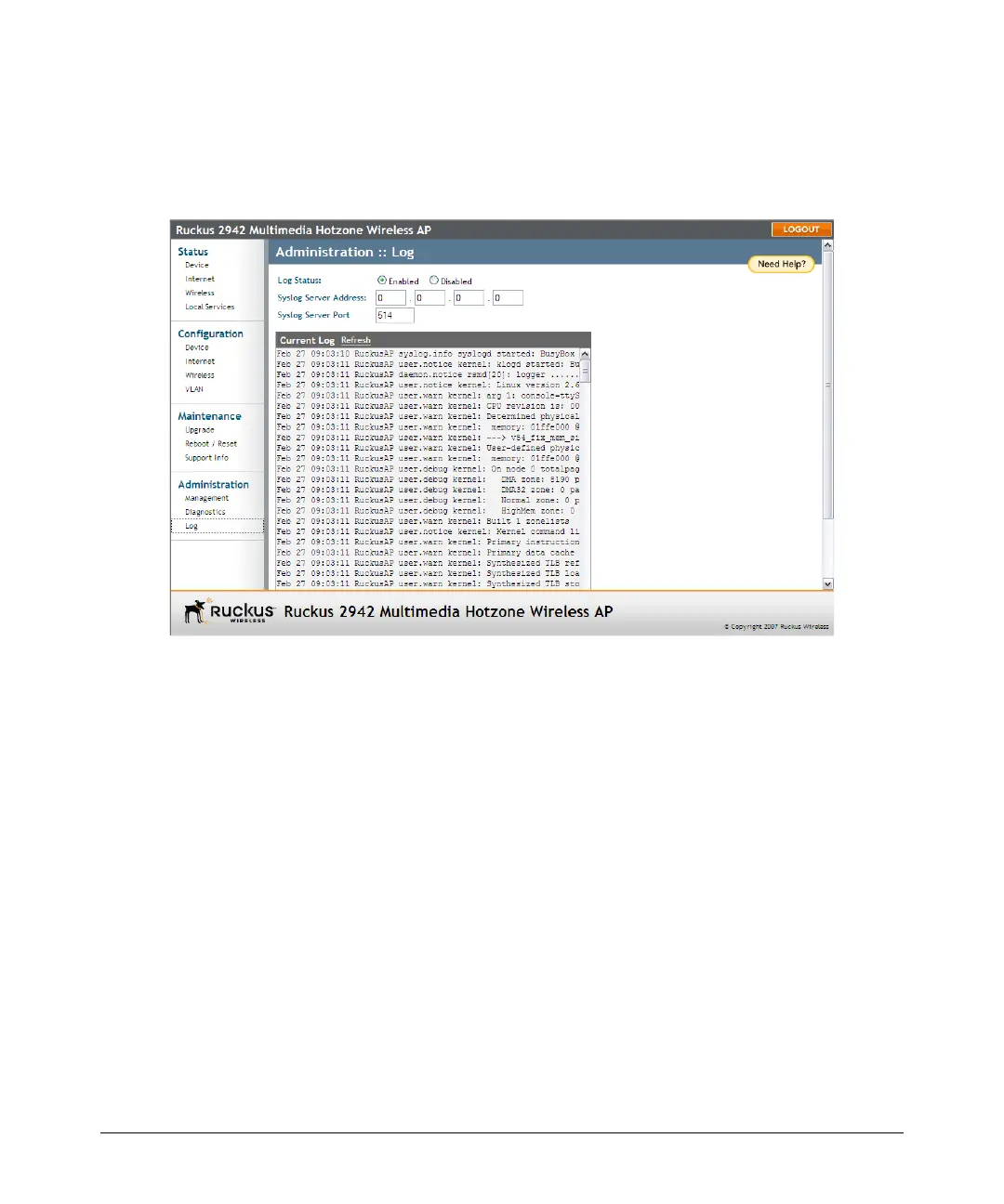 current log file to Ruckus Wireless Support: