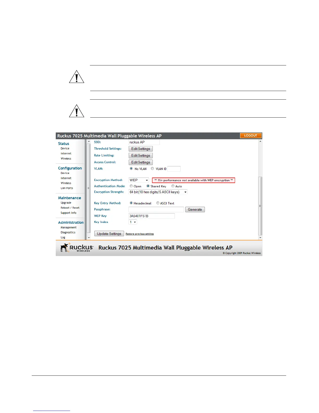 CAUTION: WEP encryption has been proven to be easily circumvented. Therefore,