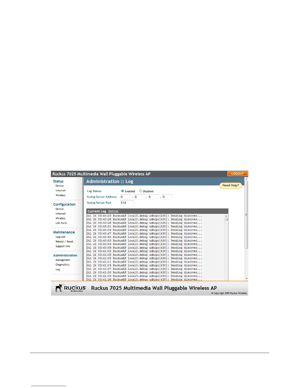 Figure 32. The Administration > Log page