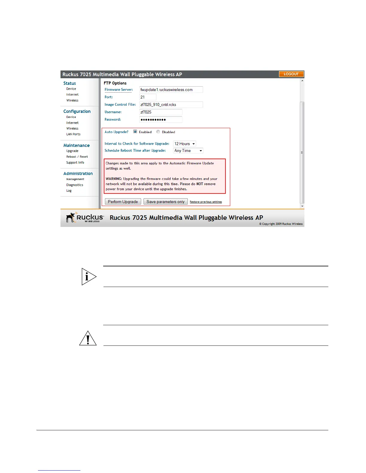 CAUTION: Do not change any of the Image Control File, Username, or Password