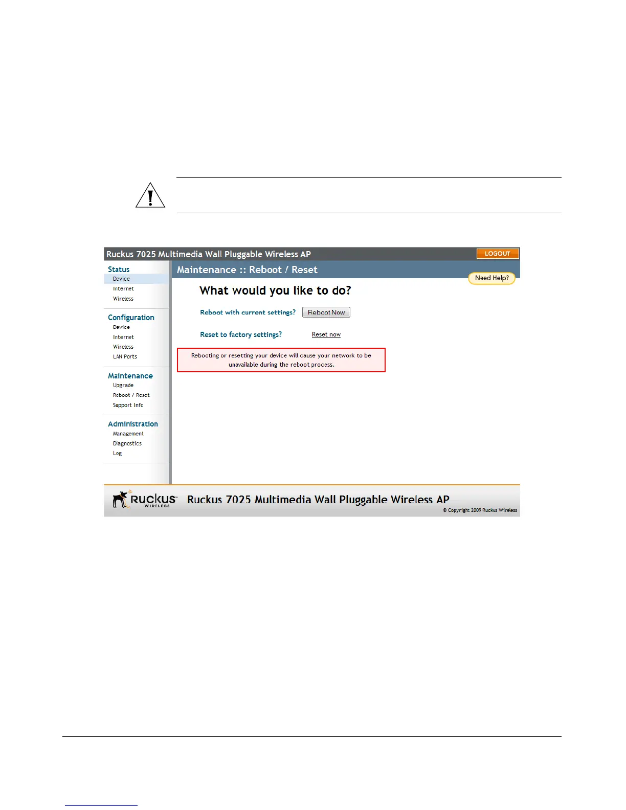 CAUTION: Rebooting the Multimedia Wi-Fi Wall Switch will disrupt network commu-